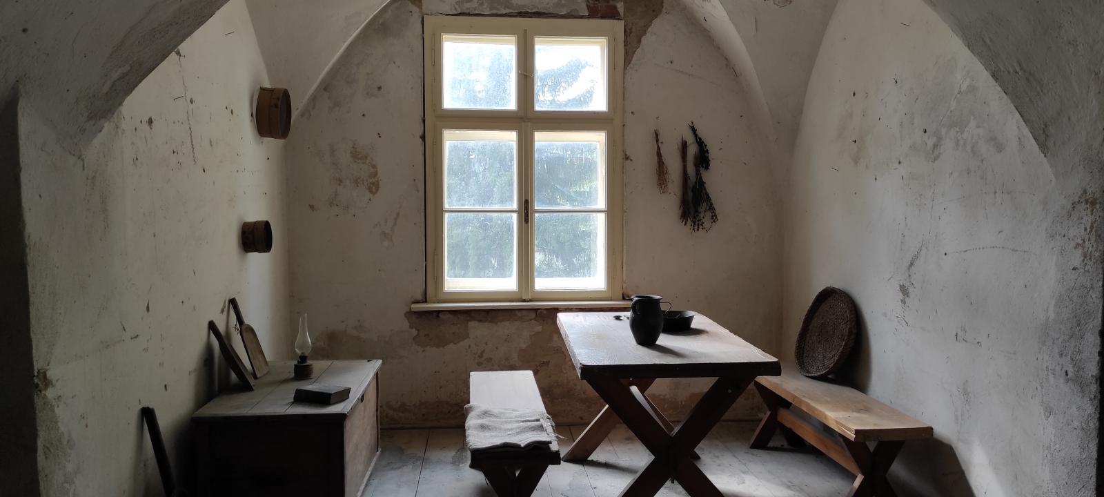 Das wertvollste erhaltene Denkmal des Schlosses ist das Gewölbe im ehemaligen Gerichtssaal und im unteren Stockwerk des Schlosses. Hier fällte einst die Feudaljustiz der Herren ihre Urteile. Sie können aber auch die historisch eingerichtete Kerkerwohnung mit dem angrenzenden Gefängnis besichtigen und die einzigartige Sammlung alter farbiger Ziegelsteine bewundern.