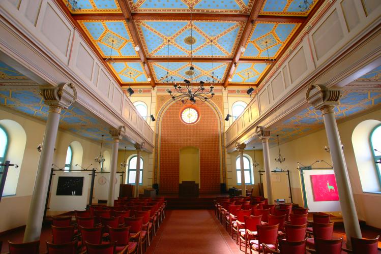 Die Synagoge wurde Ende des 19. Jahrhunderts im eleganten neuromanischen Stil errichtet, an ihrer späteren Umgestaltung war der namhafte Wiener Architekt Max Fleischer beteiligt. Während des Zweiten Weltkriegs verwandelte sich der Bau in eine Lagerhalle. Die Renovierung im ausgehenden 20. Jahrhundert gestaltete sich finanziell wie technisch sehr aufwändig, doch das Ergebnis ist wahrhaft prachtvoll. Das luftig wirkende Interieur der Synagoge mit der eleganten Galerie und der himmelblauen Decke kann sich ebenso sehen lassen wie die majestätische Fassade des Baus. Darüber hinaus gibt es hier Ausstellungen zum jüdischen Leben in der Stadt, eine Kunstgalerie, und nachmittags finden oft Konzerte statt. Die Synagoge von Břeclav lebt sichtbar und hörbar auch heute noch.