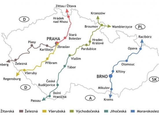 Mehrere Jakobswege verlaufen durch die Tschechische Republik und sind an die deutschen und polnischen Caminonetze angebunden. Die Wegemarkierung wird hier von Ultreia, z.s. in Zusammenarbeit mit dem Klub českých turistů (KČT) koordiniert. Die meisten tschechischen Abschnitte sind mit den üblichen Wanderzeichen des KČT markiert; einige Teilstücke sind zusätzlich mit Pfeilen oder Aufklebern mit der Jakobsmuschel gekennzeichnet, die von Mitgliedern der Jakobsbruderschaften aus Polen, Deutschland und Österreich angebracht wurden.